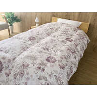 - 側地=TTC:ポリエステル85%綿15%、足し羽毛=ハンガリーホワイトダウン90%・フェザー10%、ダウンパワー=370 0.3kg、立体キルト5×5