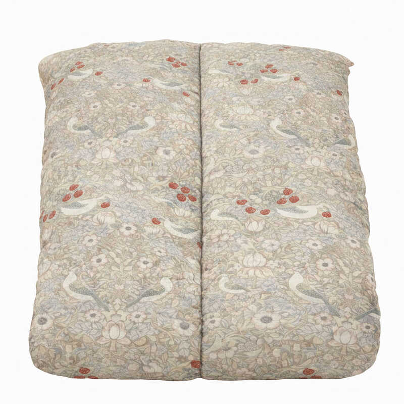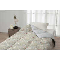 - 側地=TTC:ポリエステル85%綿15%、足し羽毛=ハンガリーホワイトグースダウン93%・フェザー7%、ダウンパワー=400 0.3kg、立体キルト5×5