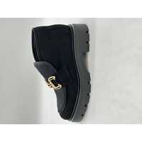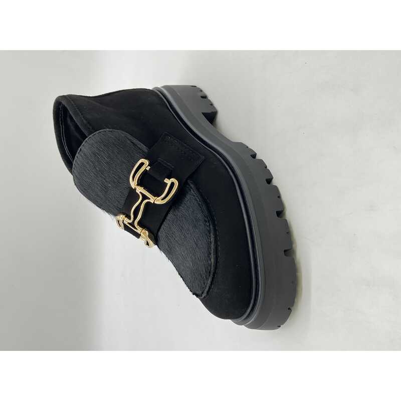 スエード革にゴールドのビットが映えるアンクル丈のショートブーツです。甲部分の馬毛使いがイタリア製らしいこだわりを感じます。厚みのあるソールはクッション性が良く、一日履いても疲れにくい仕様です。