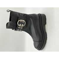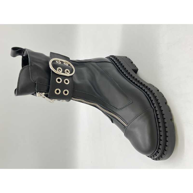 大きめのメタルバックルとアイレット付きストラップが、無骨でモード感のある印象を演出しています。ストリート系やロックテイストのファッションにもぴったり。パンツスタイルにもスカートにも合わせやすく、カジュアルからモードまで幅広く活躍してくれます。