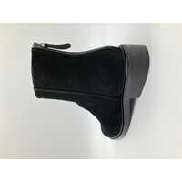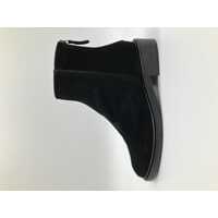 表情のあるベロア革素材を使ったシンプルなショートブーツです。バックファスナーがアクセントになっています。3.5cmヒールで歩きやすく、長時間履いても疲れにくい一足です。