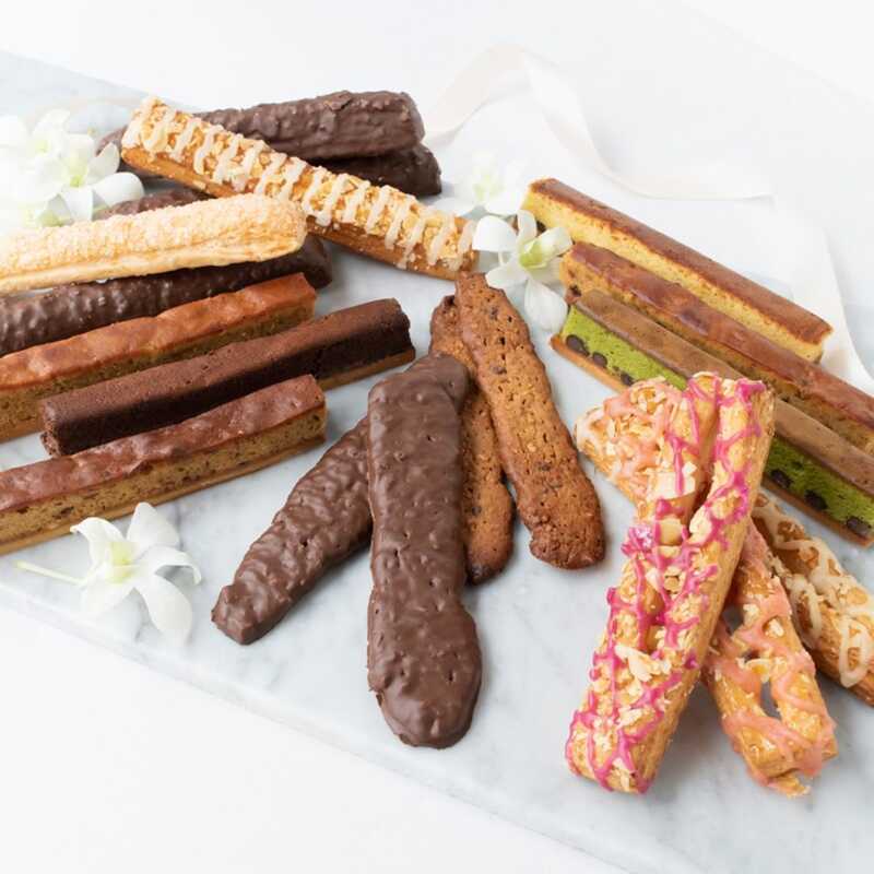 フレッシュバターたっぷりのサクッとしたアーモンド風味とチーズ風味のパイや、食べやすいスティック状のケーキ、クッキーを詰め合せた18本セットです。