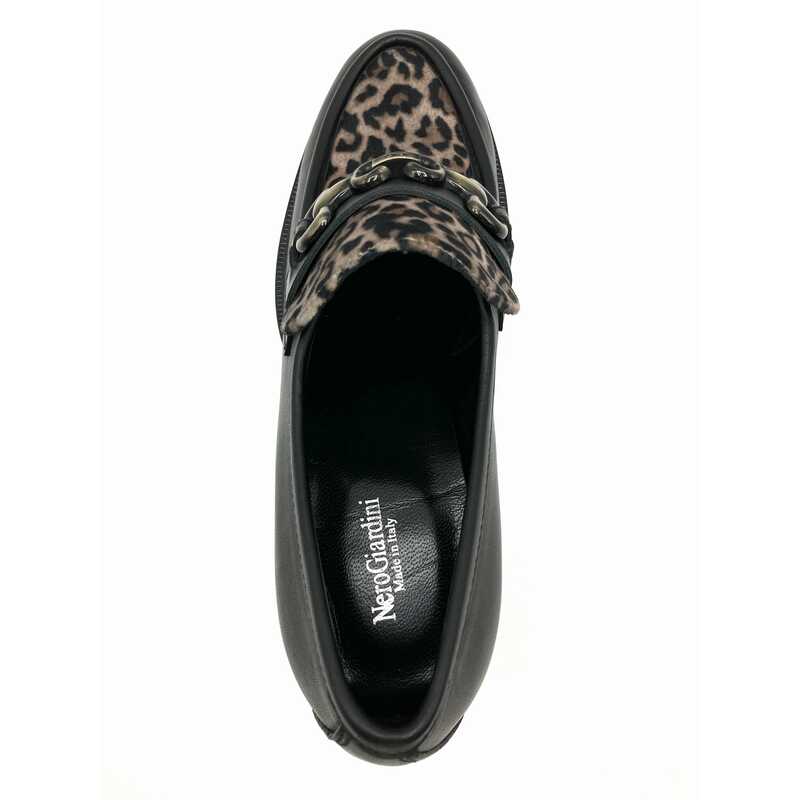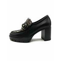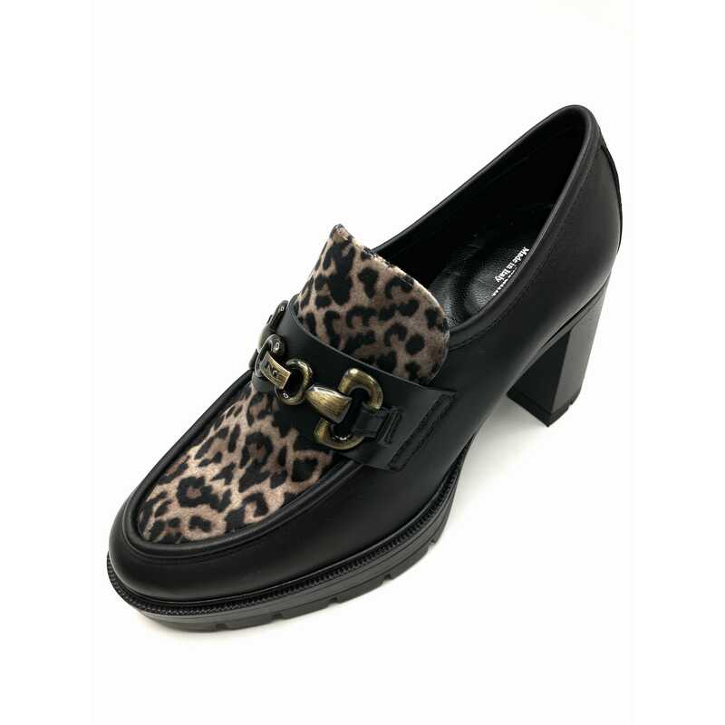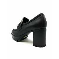上質なイタリア素材を使ったヒールアップローファーです。甲部分のビット金具がアクセントになっています。ヒール高さ7.5cmのチャンキーヒールは安定感があり、脚長効果も期待できます。