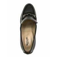 上質なイタリア素材を使ったヒールアップローファーです。甲部分のビット金具がアクセントになっています。ヒール高さ7.5cmのチャンキーヒールは安定感があり、脚長効果も期待できます。