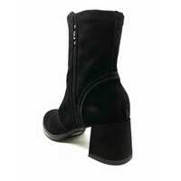 丸みのあるつま先シルエットが女性らしい雰囲気を演出しています。ベロア素地でベーシックなデザインのブーツはカジュアルなコーディネートに合わせやすい一足です。 プレーンタイプの定番アイテムだからこそ、シルエットにこだわりました。