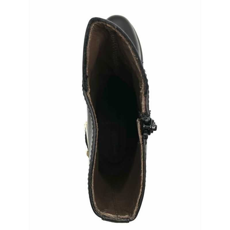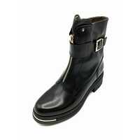 ゴールドカラーのセンタージップデザインが特徴的なブーツです。つま先の金具もアクセントになっています。シンプルなデザインで洗練された足元を演出します。