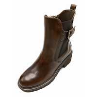 ベルトでアクセントを加えた、スタイリッシュなサイドゴアショートブーツです。低めのヒールで安定感があり歩きやすいデザインに仕上げています。内側にファスナーが付いているので、脱ぎ履きも簡単です。