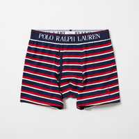 ネイビーとブルーをベースにしたマルチストライプ柄で、左裾に入れたブランドアイコンのポロプレイヤー刺しゅうもポイントです。