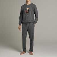 オーガニックコットン100%のロングスリーブクルーネックシャツとロングパンツのスリープウェアセット。