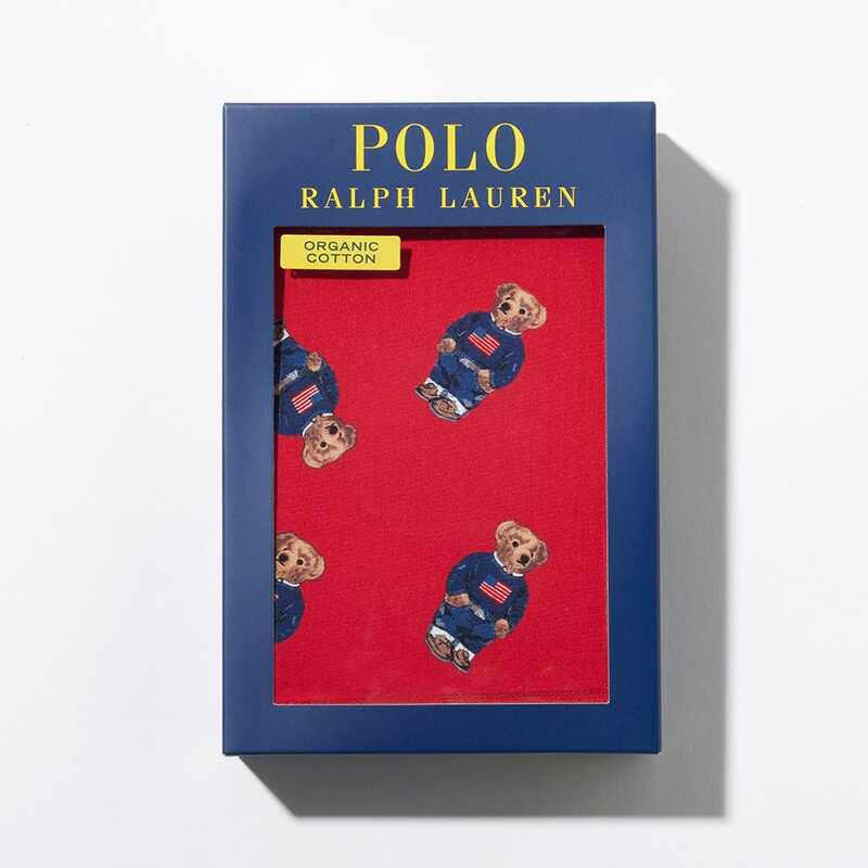 アイコニックなPOLOベア(コアフラッグセーターベア)をオールオーバープリントした、ギフトにも最適なアイテム。