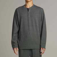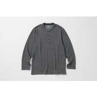 環境に配慮されたリサイクルポリエステルにコットンとポリウレタンを混紡した、保温性とストレッチ性に優れた素材によるロングスリーブヘンリーネックシャツです。