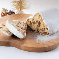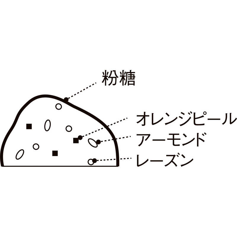 フランス産小麦、欧州産発酵バターを使用した風味のある生地にラム酒で漬け込んだレーズン、アーモンド、オレンジピールを練り込み焼き上げ、澄まし発酵バターを染み込ませました。
