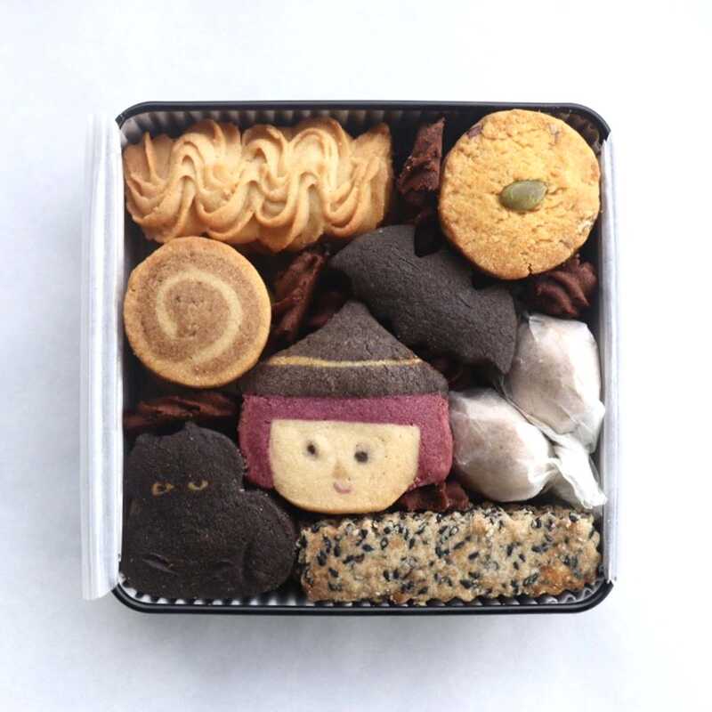 黒猫や魔女の帽子を被った女の子など。ハロウィンが楽しくなるクッキー7種類を詰め込みました。