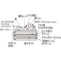 しっとりふわふわに焼き上げた生地に、生乳の香り広がる「堂島ロール」のクリームを絞り、甘酸っぱいいちごのジュレをしのばせたハローキティの練乳ムースや 真っ赤ないちごでデコレーションしました。とってもチャーミングでみんなを笑顔にしてくれるひと品。パーティーの主役にどうぞ。