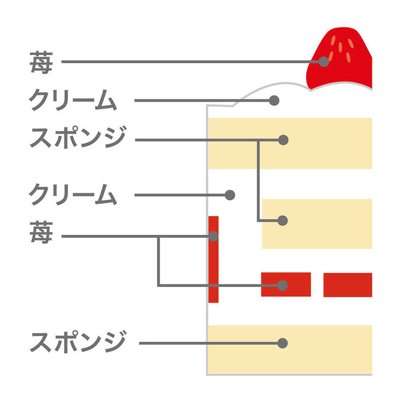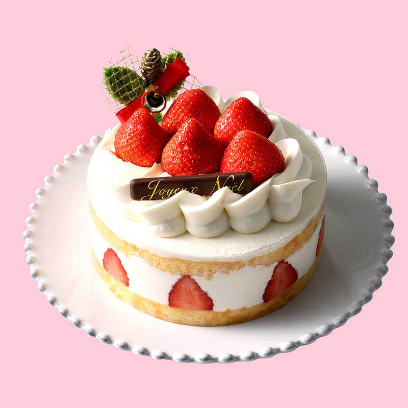 口どけなめらかなクリームとスポンジに苺をサンドした、クリスマス限定デザインのデコレーションケーキです。