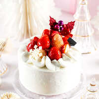 生乳のコクと香り広がる「堂島ロール」のクリームに、赤と白、2種のいちごが映える、王道アントルメ。しっとりふわふわに焼き上げた生地はクリームの味わいを引き立たせるため甘さをひかえたやさしいくちどけに。雪が舞う森の中でキラキラと光る1本のクリスマスツリーをイメージした、聖夜にふさわしい華やかなデザインに仕上げました。
