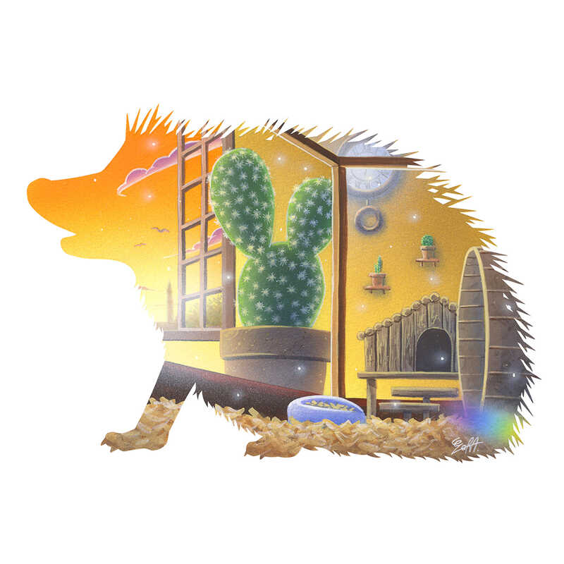 四季をテーマにした作品を得意とし2022年から動物や植物のシルエットにそのモチーフの目線から見た風景を閉じ込めるシルエットシリーズを制作中