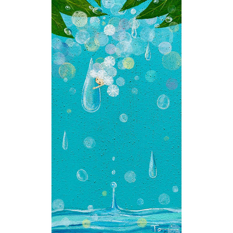 アクリル絵具を使用し、主にあたたかなアカリ・光をテーマに制作。