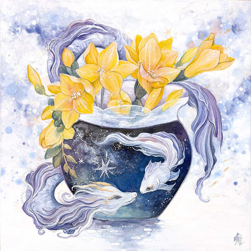 浮かんでは儚く消えていく物事の一瞬の美しさや内なる声、感情、願いを動植物に重ね「祈りと心の拠り所」を主なテーマとして作品を描く。