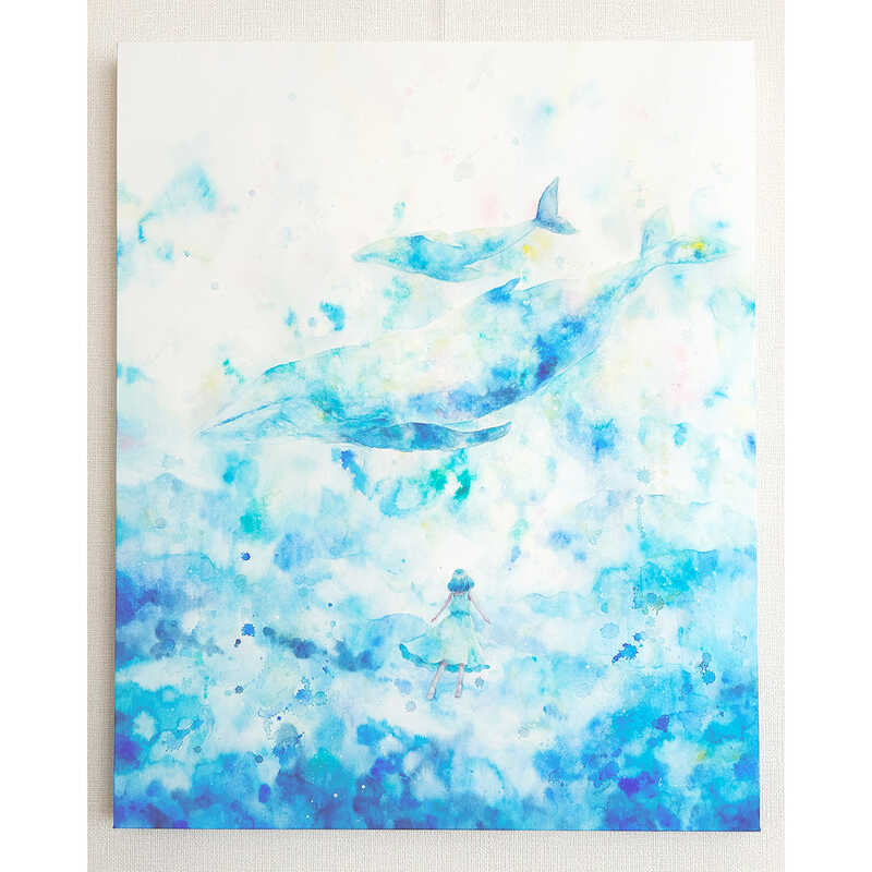 水彩絵具、鉛筆、パール顔彩、水彩紙、木製パネル
