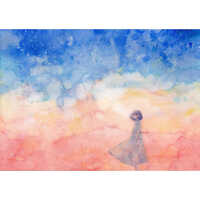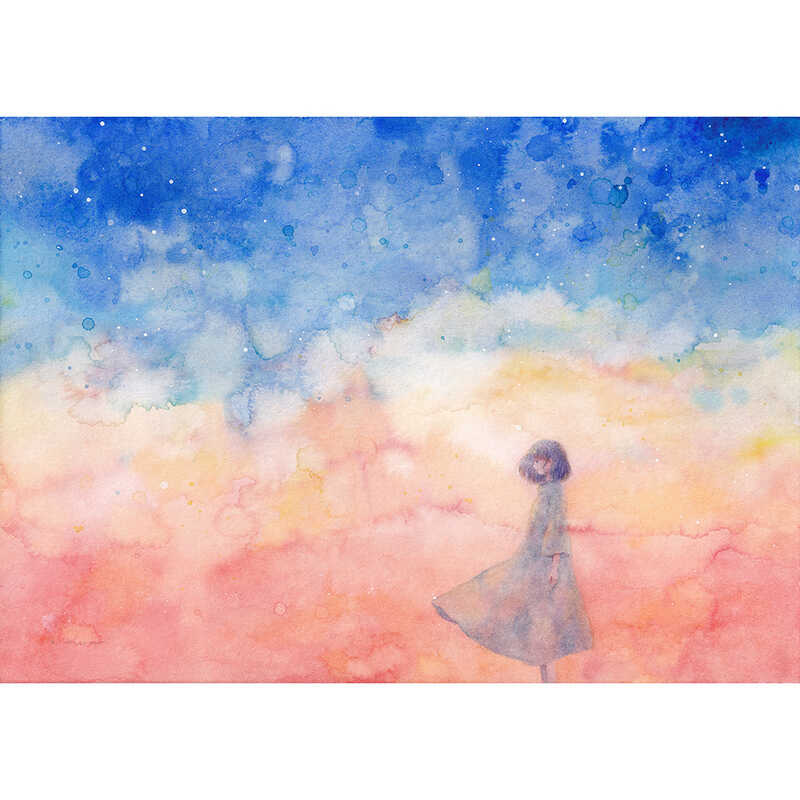 水彩絵具の滲みや重なる色を使用して、心象風景を主に制作。