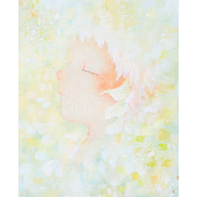 アクリル絵の具を使用し、おぼろげな輪郭と淡い色彩で、曖昧な感情や存在を描く。