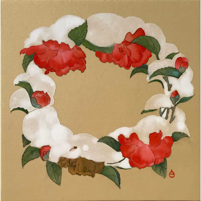 岩絵具、水干絵具、胡粉、墨、絵絹、木製パネル