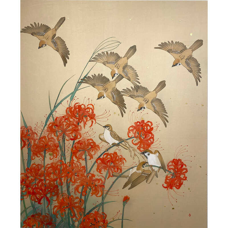 岩絵具、水干絵具、墨、胡粉、顔彩、箔、絵絹、木製パネル