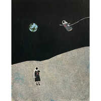 余白・記憶・想像力を軸に、アクリル絵具を用いて制作。