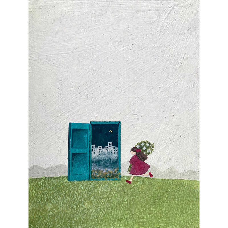 余白・記憶・想像力を軸に、アクリル絵具を用いて制作。