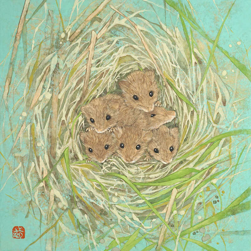 自分らしく生きたいと願いつつも中々難しい現代の自分達の光明となるよう、ただそこに生きる植物達の在りのままの姿を、岩絵具の美しい色を尊重しながら描く。