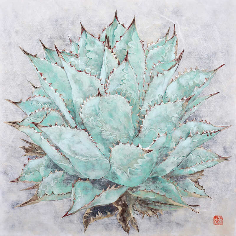 自分らしく生きたいと願いつつも中々難しい現代の自分達の光明となるよう、ただそこに生きる植物達の在りのままの姿を、岩絵具の美しい色を尊重しながら描く。