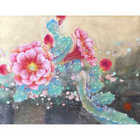 自分らしく生きたいと願いつつも中々難しい現代の自分達の光明となるよう、ただそこに生きる植物達の在りのままの姿を、岩絵具の美しい色を尊重しながら描く。