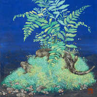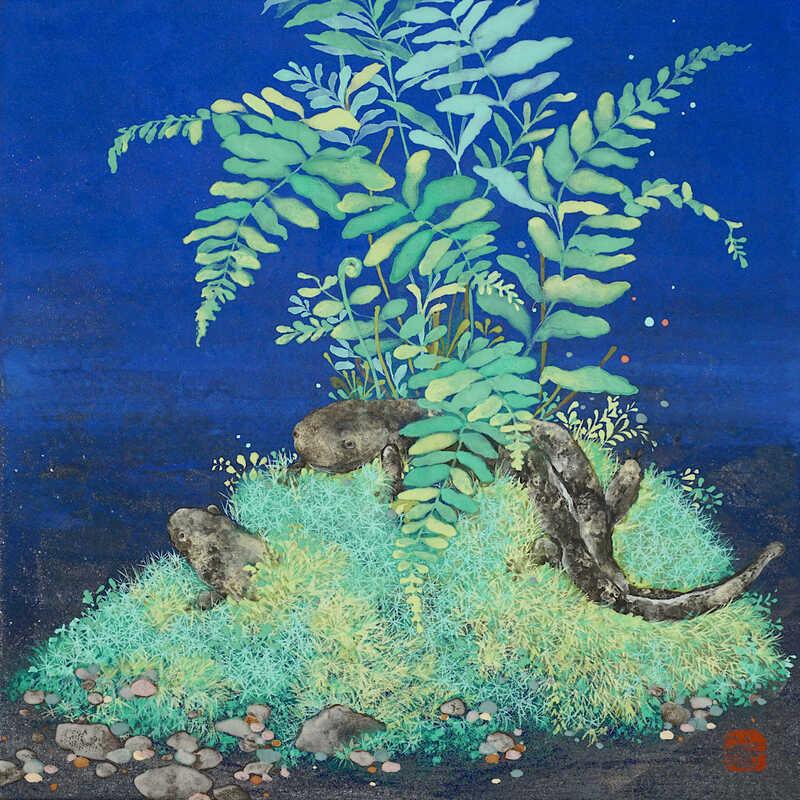 自分らしく生きたいと願いつつも中々難しい現代の自分達の光明となるよう、ただそこに生きる植物達の在りのままの姿を、岩絵具の美しい色を尊重しながら描く。