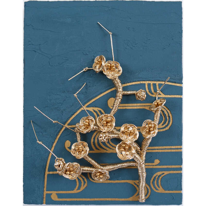 水引、アクリル、メディウム、ワイヤー、木製パネル