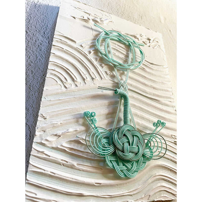 水引、アクリル、メディウム、ワイヤー、木製パネル