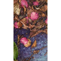 アクリル絵の具、色鉛筆、箔などを使用し、一瞬一瞬しか存在しない自然の中の小さな景色との出会いを大切に、自然の落ち物と地面、植物を中心に「偶然性と神秘」を制作のテーマとして侘び寂びや温度を纏う世界を描く。
