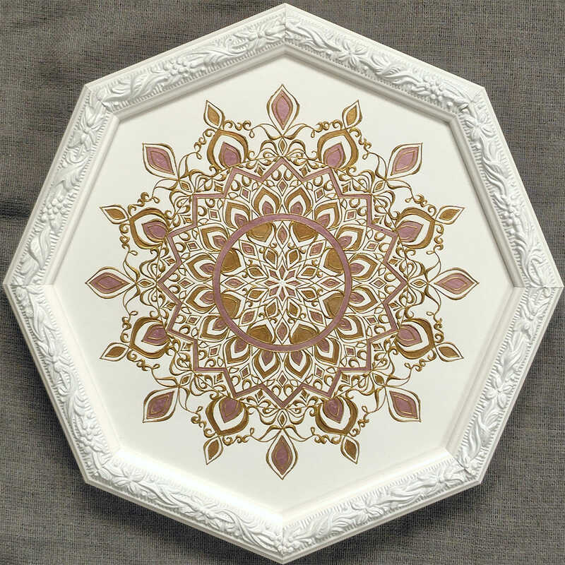 「美しく、繊細な、模様を介して、祈りとともに心情や情景を紡ぐ」を主テーマとして、アクリル絵の具を絞り出して半立体の繊細な模様を描き、煌めきや質感を組み合わせて作品を制作