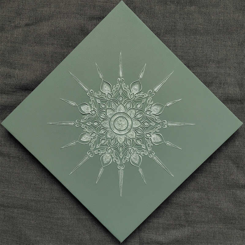 「美しく、繊細な、模様を介して、祈りとともに心情や情景を紡ぐ」を主テーマとして、アクリル絵の具を絞り出して半立体の繊細な模様を描き、煌めきや質感を組み合わせて作品を制作