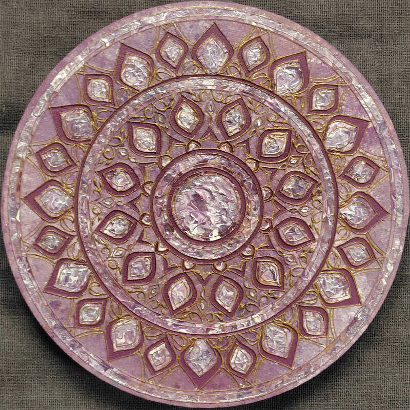 「美しく、繊細な、模様を介して、祈りとともに心情や情景を紡ぐ」を主テーマとして、アクリル絵の具を絞り出して半立体の繊細な模様を描き、煌めきや質感を組み合わせて作品を制作