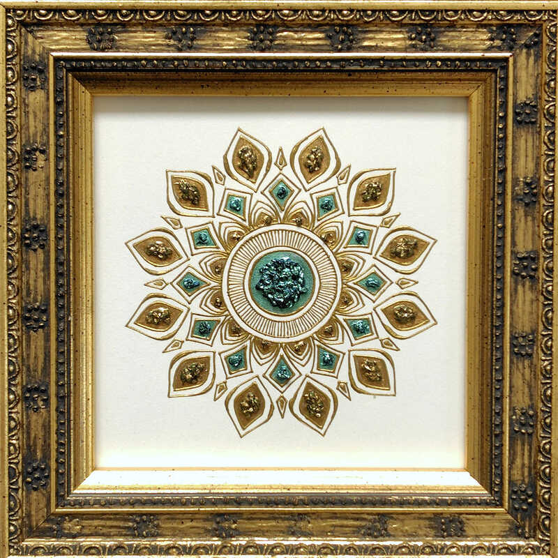 「美しく、繊細な、模様を介して、祈りとともに心情や情景を紡ぐ」を主テーマとして、アクリル絵の具を絞り出して半立体の繊細な模様を描き、煌めきや質感を組み合わせて作品を制作