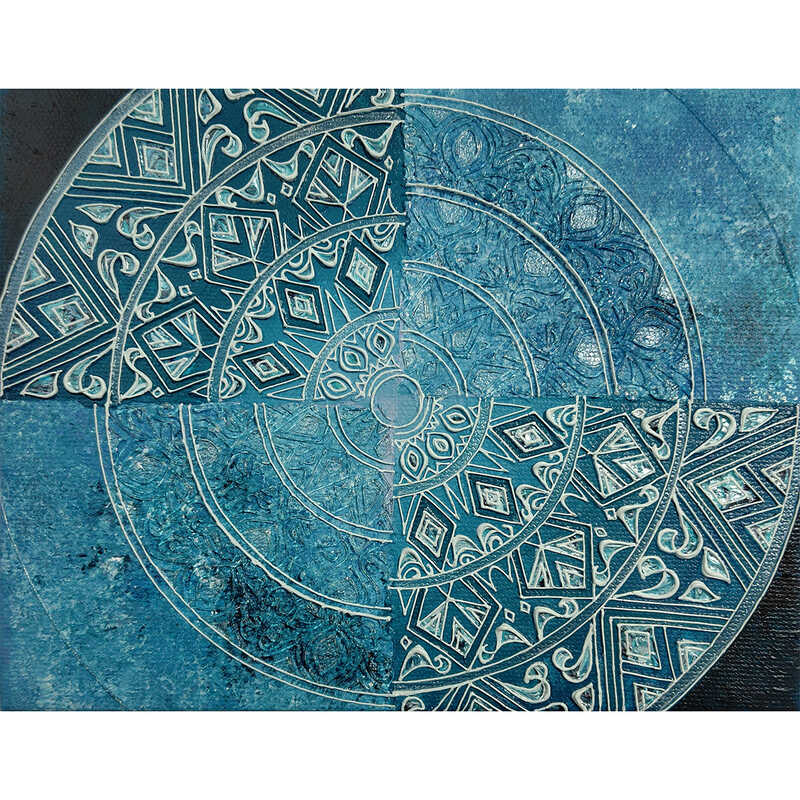 「美しく、繊細な、模様を介して、祈りとともに心情や情景を紡ぐ」を主テーマとして、アクリル絵の具を絞り出して半立体の繊細な模様を描き、煌めきや質感を組み合わせて作品を制作