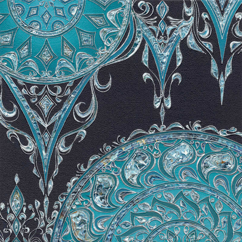 「美しく、繊細な、模様を介して、祈りとともに心情や情景を紡ぐ」を主テーマとして、アクリル絵の具を絞り出して半立体の繊細な模様を描き、煌めきや質感を組み合わせて作品を制作