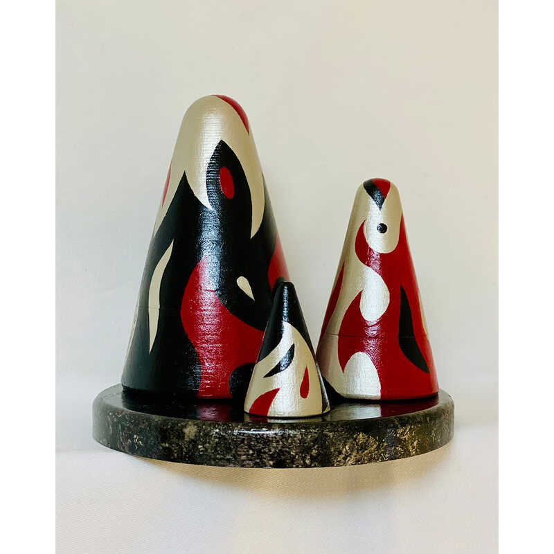 3体組白木マトリョーシカ、アクリル絵具、ニス