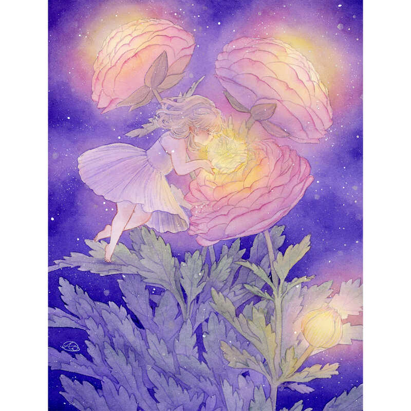 主に透明水彩絵具を使用し、夢と現実の間のような世界をテーマに作品を制作。