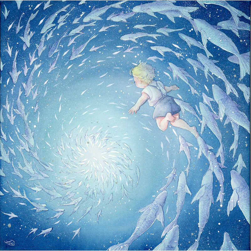 小さなこどもや動植物などの自然をモチーフに、世界のどこかにあって欲しい、見てみたいと思う情景を想像し、その一場面を作品として描く。