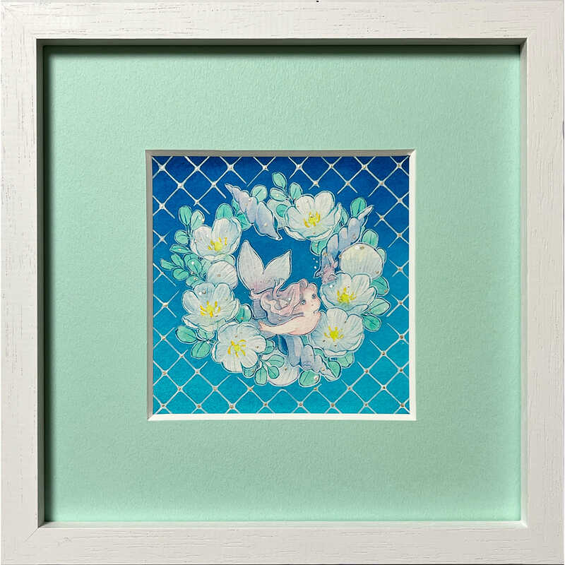 主に透明水彩絵具を使用し、夢と現実の間のような世界をテーマに作品を制作。