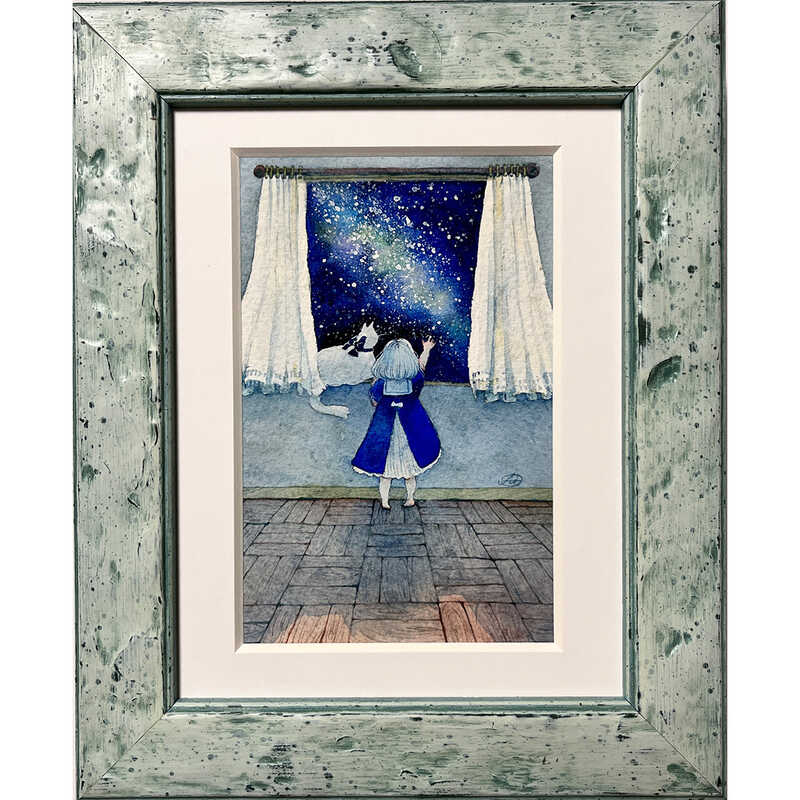 主に透明水彩絵具を使用し、夢と現実の間のような世界をテーマに作品を制作。