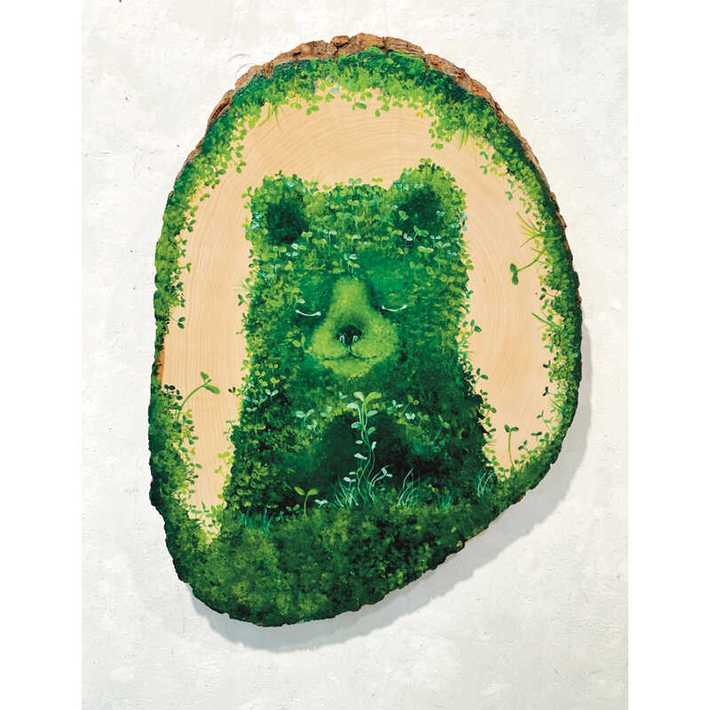 「自然との共存」をテーマにグリーンベースで描く作品は森と生き物が同化した命そのものを表現している。