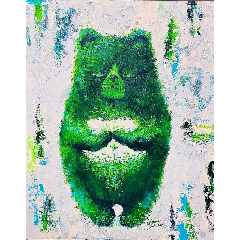 「自然との共存」をテーマにグリーンベースで描く作品は森と生き物が同化した命そのものを表現している。